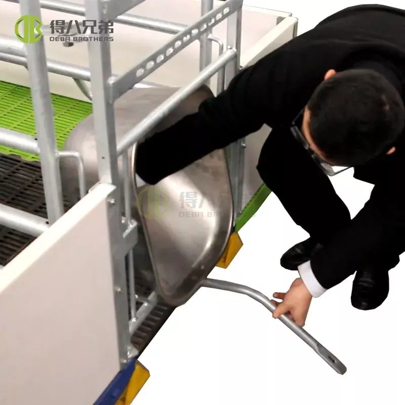 2. Cả chiều dài và chiều rộng của thùng đều có thể được điều chỉnh theo kích thước của heo nái. Một máng lật bằng thép không gỉ công suất cao được cố định vào thùng.